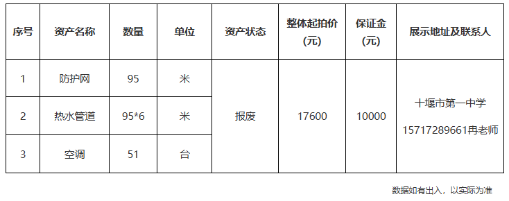 1.湖北省十堰市第一中學(xué)報廢資產(chǎn):