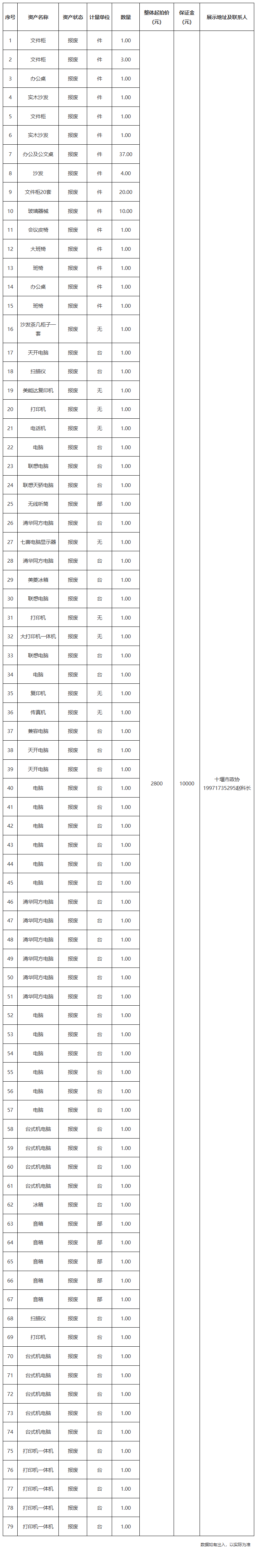 2.中國人民政治協(xié)商會議湖北省十堰市委員會報廢資產(chǎn):