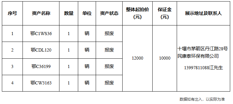 ? ?4.湖北省十堰市鄖陽區(qū)行政事業(yè)單位報廢車輛: